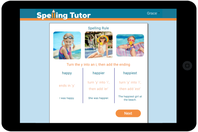Spelling Tutor works at your child's pace, using the latest research to teach spelling.